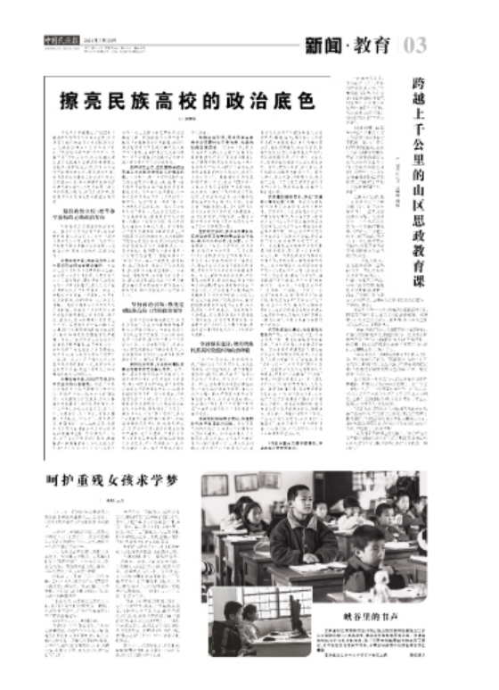 新闻网讯 3月23日,《中国民族报》刊登我校党委书记张京泽署名文章《擦亮民族高校的政治底色》。文章强调,民族高校要恪守“为党育人、为国育才”的初心使命,在全面建设社会主义现代化国家新征程中擦亮政治底色,坚持政治立校,把牢办学治校的正确政治方向;坚持政治引领,强化党对民族高校工作的政治领导;坚持强基建设,切实增强民族高校党组织的政治功能,为建设世界一流大学凝聚底力底气、夯实底层架构,为实现中华民族伟大复兴做出应有贡献。全文如下: