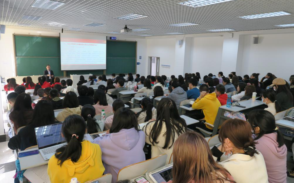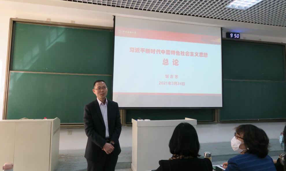 3月24日上午,党委副书记邹吉忠在文东204教室为2020级法英班、法学民族班本科生讲授了本学期《习近平新时代中国特色社会主义思想概论》开学第一课。马克思主义学院班子成员及师生党员到场全程聆听了讲授。