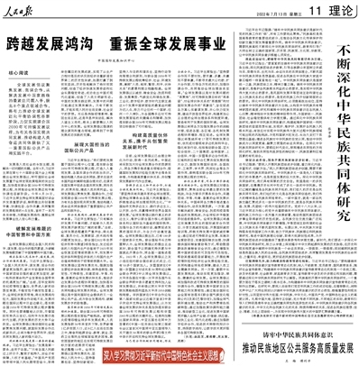 新闻网讯 7月13日,《人民日报》刊登我校党委书记张京泽署名文章《不断深化中华民族共同体研究》。全文内容如下: