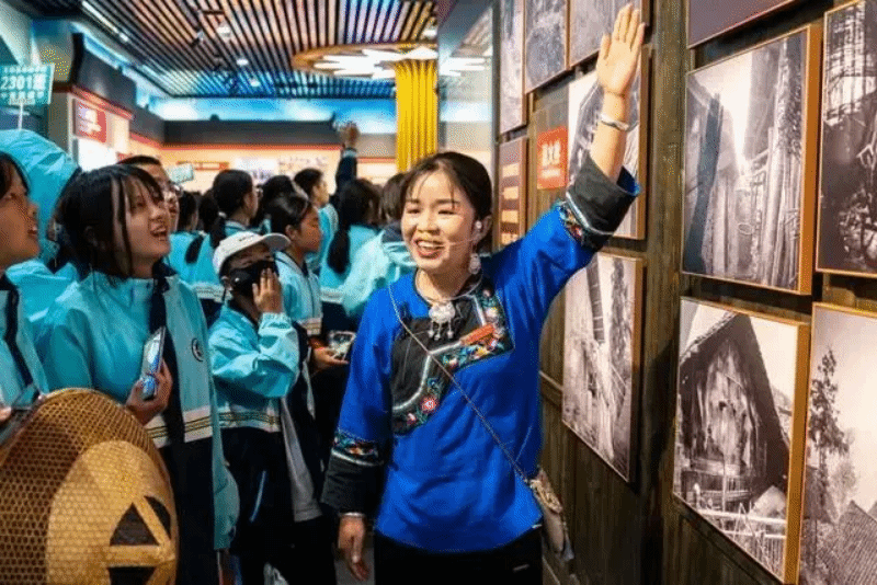 ▲5月1日,在广西民族博物馆展厅里,讲解员为游客带来公益讲解。韦颖琛摄